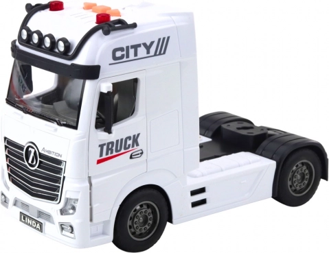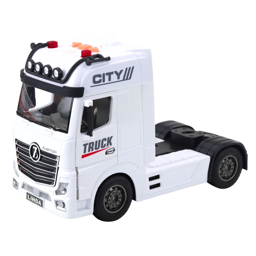 Het model is gemaakt van hoogwaardige kunststof en biedt dankzij de afneembare aanhanger en de openende deuren veel speelscenario’s. Eenvoudige handmatige aandrijving, aangevuld met licht- en geluidseffecten, garandeert langdurig en leuk spelen, binnen en buiten.