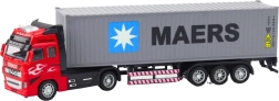 Een realistische containertruck met pull-back aandrijving voor alle kleine techniekliefhebbers. Combineert metalen onderdelen en duurzaam plastic voor een lange levensduur, heeft openslaande deuren, een grote afneembare container en rubberen draaibare wielen voor soepel rijden.