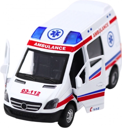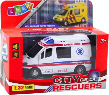 ambulance 1:32 met pull-back aandrijving, 3× AG13-batterij, fabrikantsverpakking