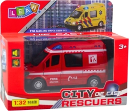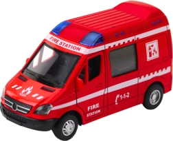 Ontdek het gedetailleerd uitgewerkte brandweermodel op schaal 1:32, dat een echte hulpverleningswagen natuurgetrouw nabootst. De robuuste constructie van metaal en kwaliteitskunststof garandeert een lange levensduur, terwijl de rode uitvoering met de opdrukken "FIRE STATION" extra authenticiteit geeft. De pull-back aandrijving trek je simpelweg naar achteren, waarna de wagen zelf naar voren schiet voor nog meer actiespel.
