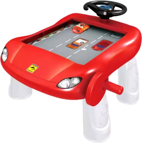 De rode rijsimulator in de vorm van een stijlvol tafeltje doet denken aan de voorkant van een sportauto en valt meteen op door het opvallende design. Kinderen bedienen de autootjes met een handmatige draaiknop en het stuur, ontwijken obstakels en trainen zowel logisch denken als reactievermogen. Dankzij de robuuste kunststof uitvoering is het speelgoed stabiel, duurzaam en ideaal voor dagelijks spelen zonder batterijen.