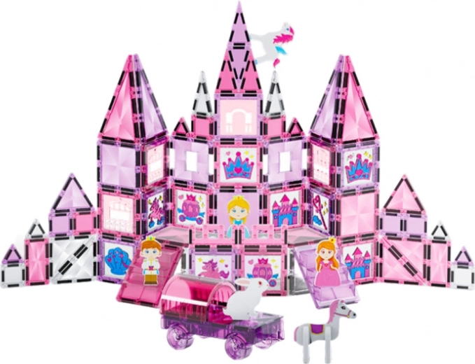 Ontdek een creatieve wereld met deze bouwset van 126 onderdelen, die magnetische verbindingen voor eenvoudig en stabiel bouwen combineert met glas-in-lood raampjes om in te kleuren. Met de meegeleverde stiften kunnen kinderen hun eigen kleurpatronen maken en zo fantasie, fijne motoriek en logisch denken ontwikkelen. De halftransparante roze blokjes zien er aantrekkelijk uit en maken van elke creatie een echte blikvanger.