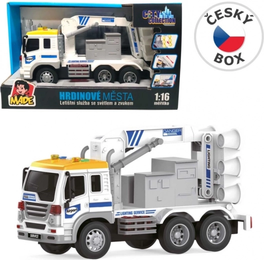 Een realistische luchthavenserviceauto die jonge fans van techniek en vliegtuigen zal verrassen. Voorzien van een uitschuifbaar navigatielicht, licht- en geluidseffecten en direct speelklaar dankzij de batterijen in de verpakking. Ideaal speelgoed voor kinderen vanaf 3 jaar.