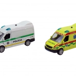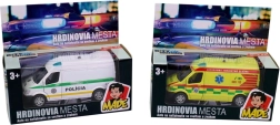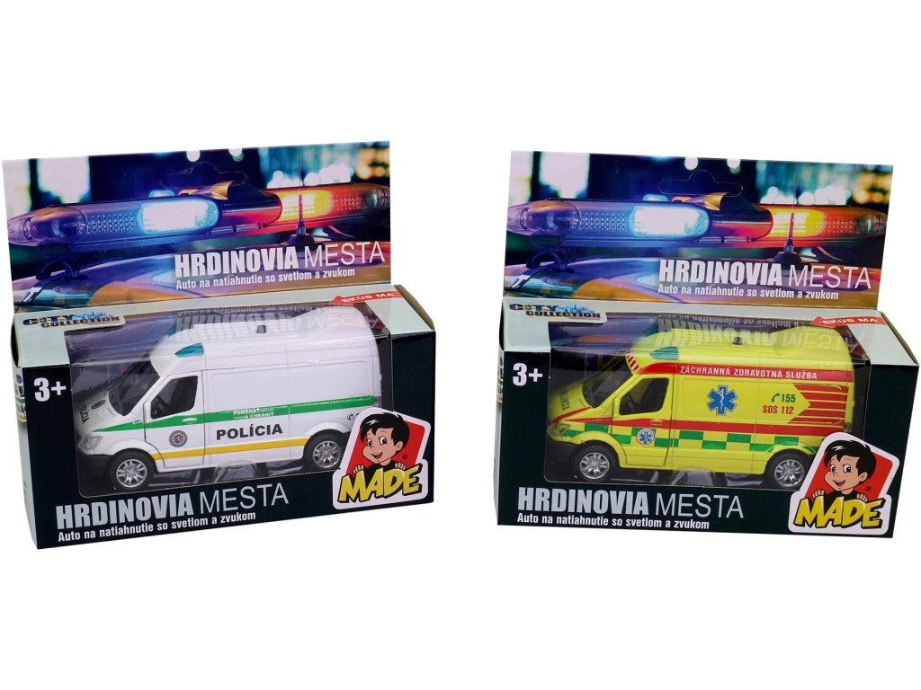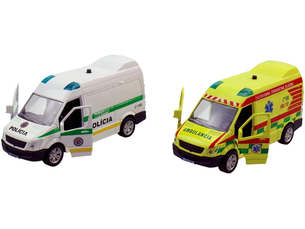 Breng realisme in kindermissies met gedetailleerde modellen van reddingsvoertuigen in een ontwerp dat bekend is van de Slowaakse wegen. Er zijn 2 varianten – ambulance of politie. De pull-back aandrijving zorgt voor een vlotte rit, terwijl lichtgevende zwaailampen en geluid de sfeer van de reddingsactie versterken.