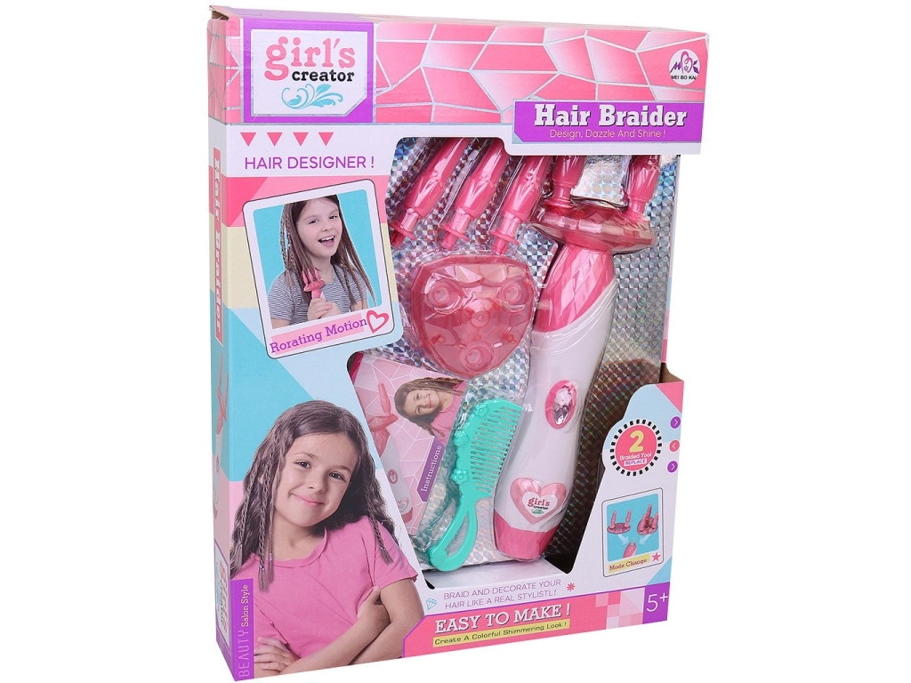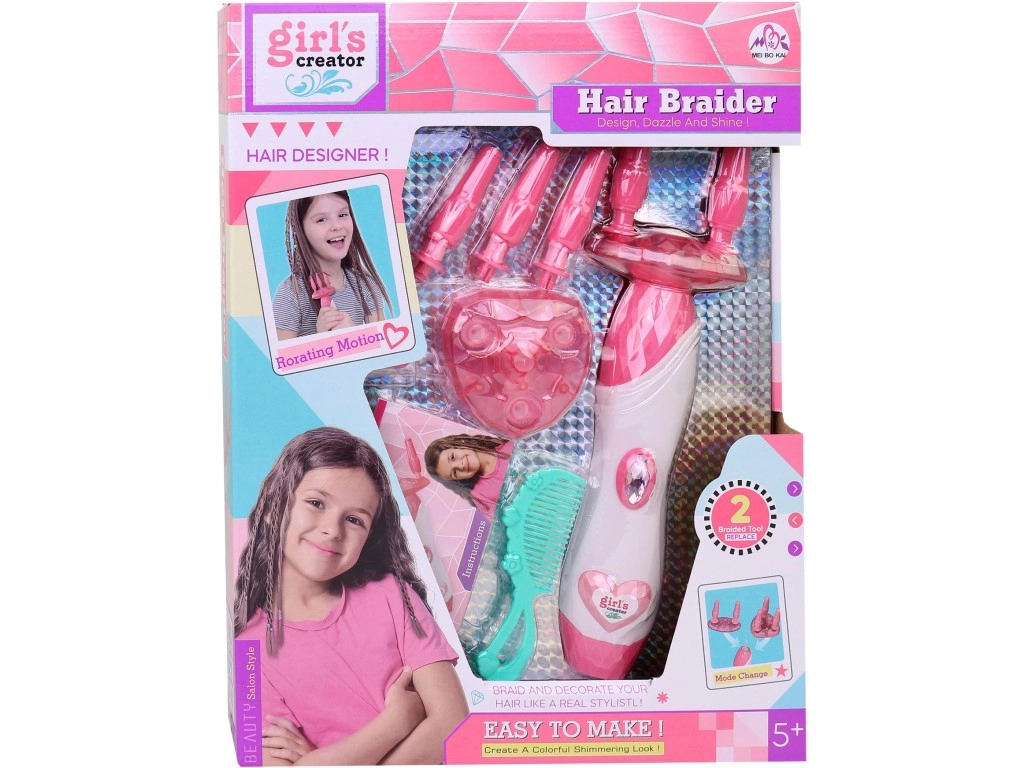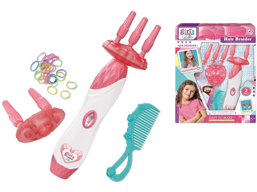 Maak in een handomdraai stylische vlechtjes met een eenvoudige haarvlechtset. De elektrische vlechtmachine biedt 2 vlechtstanden (van twee of drie strengen), eenvoudige bediening met de “diamanten knop” en is ideaal voor meisjes vanaf 5 jaar. In de verpakking vind je een vlechtmachine, kam en elastiekjes – perfect voor kapsels thuis en plezier met vriendinnen.