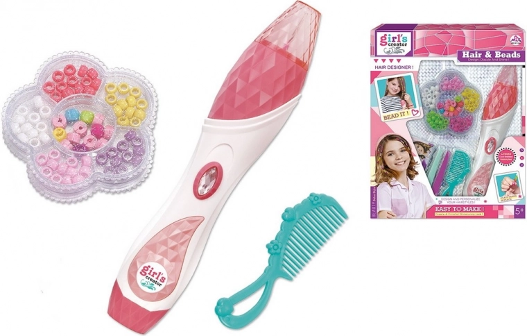 Deze creatieve set voor het invlechten van kralen in het haar zal elk meisje blij maken dat van stijlvolle kapsels houdt. Dankzij de eenvoudige inrijger bevestig je in een mum van tijd veelkleurige kralen aan een gekozen haarlok en creëer je zo een originele look voor elke dag en speciale gelegenheden.