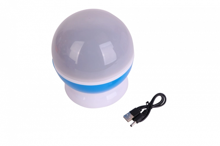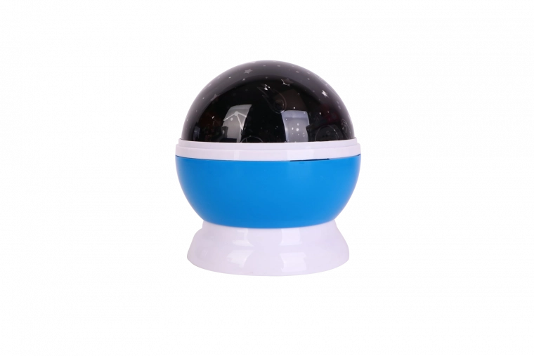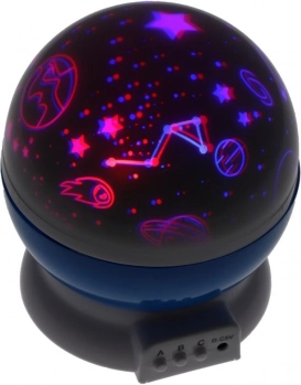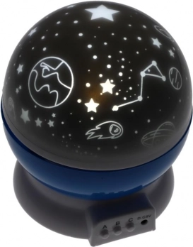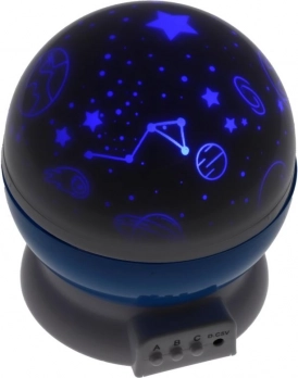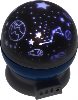 Stijlvolle sterrenhemelprojector met voeding via batterijen en USB. Rustgevend licht voor gemakkelijk inslapen, kunststof uitvoering, compacte afmetingen 14 × 11 cm.