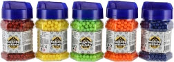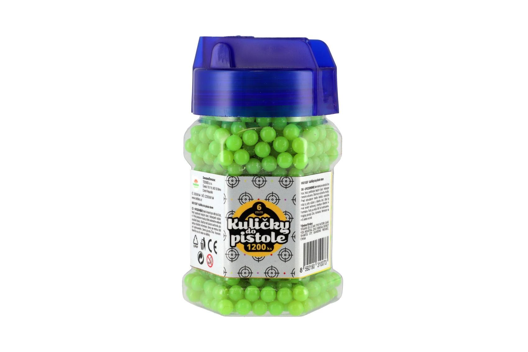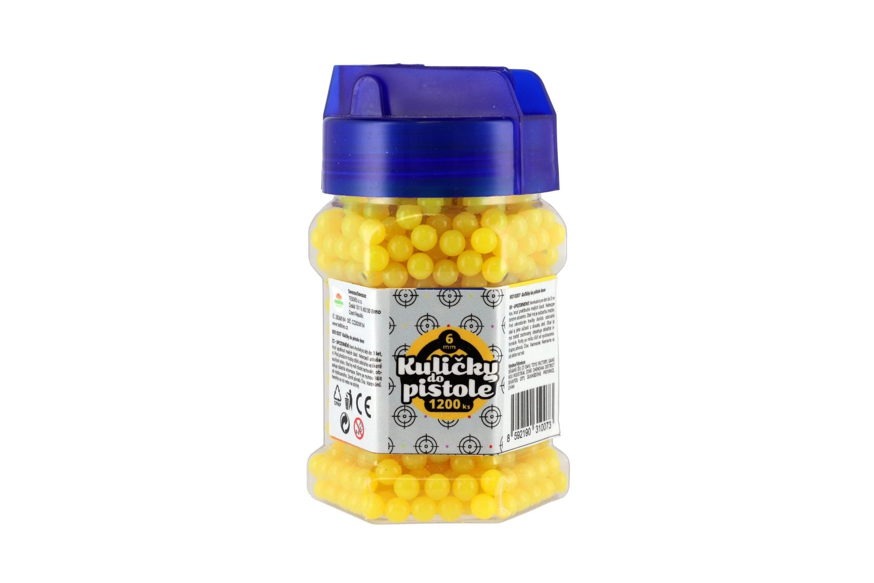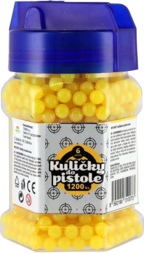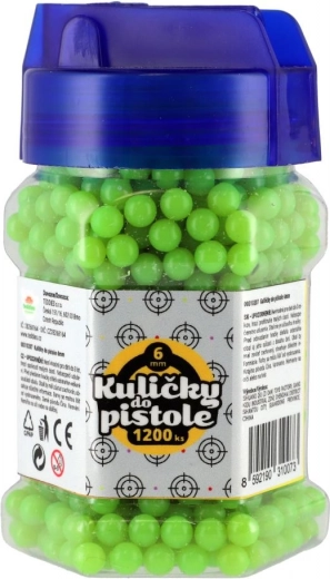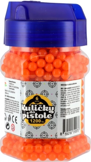 Vervangende plastic balletjes met een diameter van 6 mm voor kinderpistolen – ideaal voor leuk schieten op doelen. De verpakking bevat 1200 lichte balletjes in een praktisch flesje met dop voor eenvoudig doseren en opbergen. De balletjes zijn verkrijgbaar in een mix van kleuren en zijn geschikt voor gangbare speelgoedpistolen.