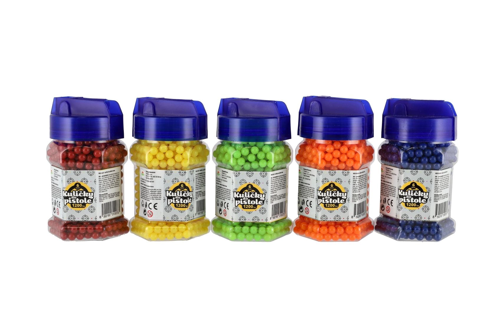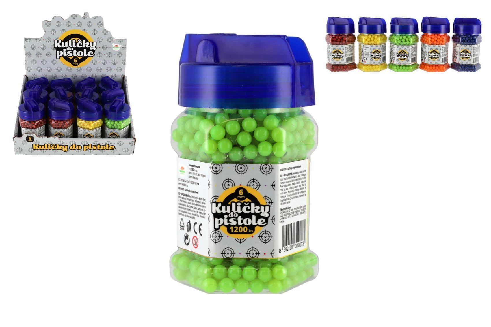 Plastic balletjes voor kinderpistool 6 mm in een praktische fles. 1200 stuks, mix van kleuren, licht en geschikt voor speelgoedpistolen. Ideaal voor leuk schieten.