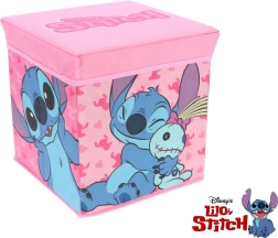 Praktische opvouwbare opbergbox met gelicentieerd STITCH-motief die ook dient als poef met een stevig deksel. Biedt een dekselbelasting van 80 kg, een inhoud van 27 l en compacte afmetingen van 30 × 30 × 30 cm. Ideaal voor de kinderkamer, speelkamer of badkamer en na gebruik eenvoudig plat op te vouwen.