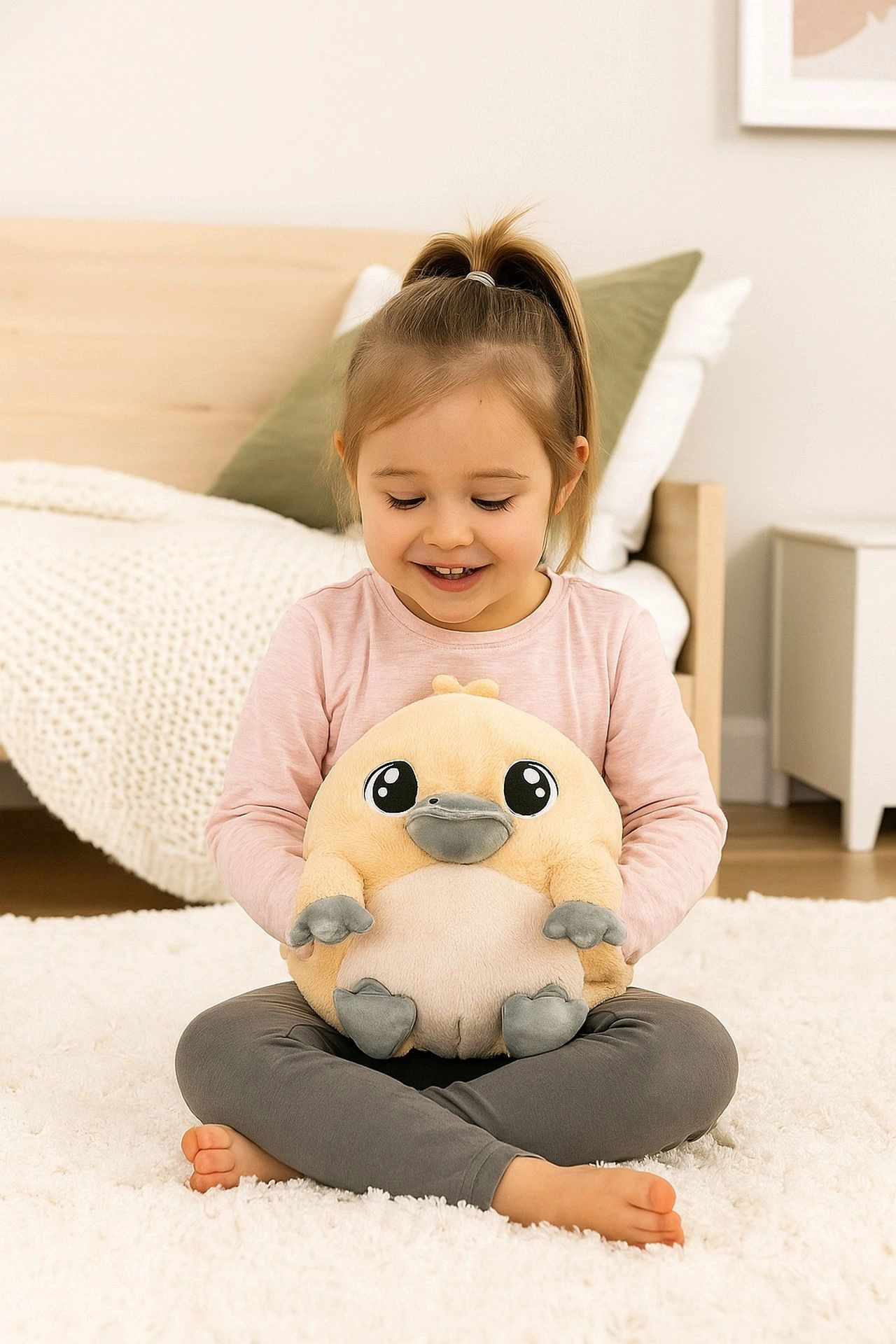 Een schattige en praktische metgezel voor kinderen en op reis: het Cozy Noxxiez vogelbekdier is een zacht, verwarmend 3-in-1 kussen dat dient als kussen, handwarmer-mof en knuffelvriend. Aan de zijkanten zitten twee openingen om je handen te verwarmen of als geheime verstopplek. Perfect voor in de auto, het vliegtuig en de kinderkamer.