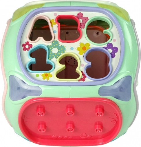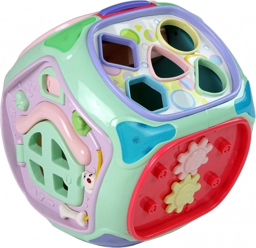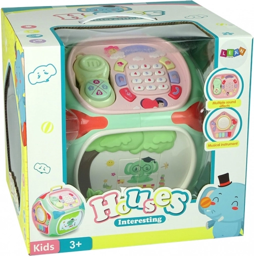 Interactieve educatieve kubus met sorteerder, telefoon en pianootje