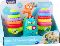 De interactieve weegschaal in de vorm van een schattig leeuwtje leert kinderen de principes van wegen en balans. De armen bewegen mee afhankelijk van het aantal en het gewicht van de geplaatste ringen, wat op natuurlijke wijze logisch denken en basisbegrippen van wiskunde ontwikkelt. De kleurrijke onderdelen in verschillende maten nodigen uit tot sorteren, vergelijken en stapelen.