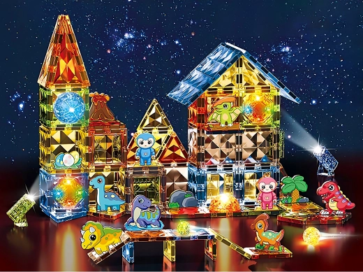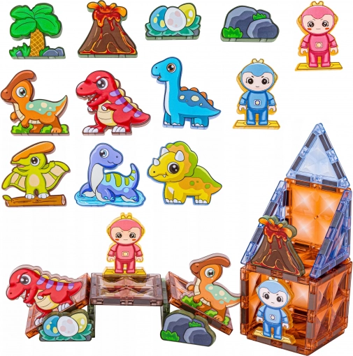 Creëer samen een unieke prehistorische wereld. De magnetische onderdelen verbinden gemakkelijk, blijven stevig zitten en lichten spectaculair op in het donker, wat het bouwen een nieuwe dimensie geeft. Kinderen bouwen verblijven, vulkanen en dino-schuilplaatsen en ontwikkelen spelenderwijs hun ruimtelijk inzicht en logisch denken.