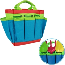 De kleurrijke set voor kleine tuiniers van het merk Woopie is ideaal voor kinderen vanaf 3 jaar die de wereld van de tuin willen ontdekken. Dankzij de veilige en lichte gereedschappen kunnen kleine tuiniers planten, water geven en voor planten zorgen in de tuin, op het balkon en zelfs op het strand. De vrolijk versierde schort met dinosaurussen maakt van spelen een creatief avontuur en stimuleert fantasie, verantwoordelijkheid en basiskennis van tuinieren.