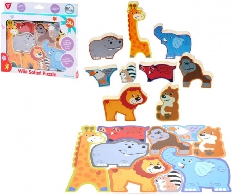 Ontdek de leuke houten inlegpuzzel met safari-dieren die de fijne motoriek, het logisch denken en de oog-handcoördinatie ontwikkelt. Kinderen kunnen volgens het voorbeeld leggen of vrij spelen met de losse stukjes. De set bevat in totaal 9 stukjes met dieren, een compact formaat van 20 × 14 cm en een praktische doos van 24 × 21 × 2 cm. Geschikt vanaf 24 maanden.