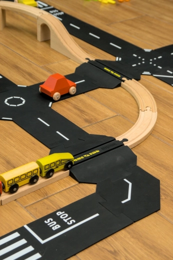 - Koppeling van wegen en rails – soepele oversteek voor auto’s over houten rails (BRIO, MAXIM).