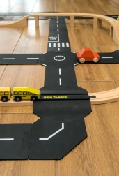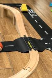 Kleine maar slimme set voor alle liefhebbers van treinen en auto’s. Het innovatieve overweggedeelte verbindt de Stad of Metropool wegen met houten rails (bijv. BRIO, MAXIM), zodat autootjes veilig over de favoriete sporen kunnen rijden. Siliconen van voedselkwaliteit zorgt voor duurzaamheid, flexibiliteit en gemakkelijk onderhoud, ook bij buitenspelen.