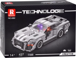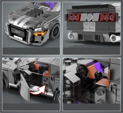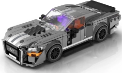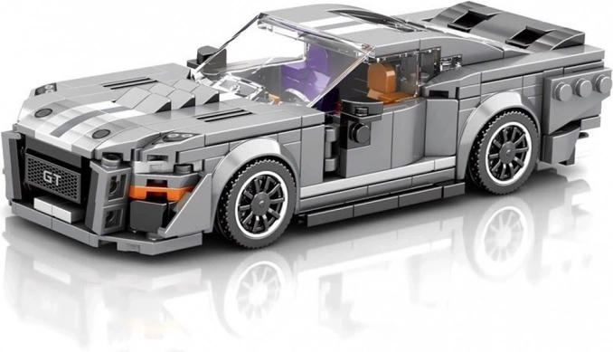Deze technische bouwset zal fans van klassieke Amerikaanse motorcultuur bekoren. Het model, geïnspireerd op de legendarische GT uit de jaren zestig, valt op door de gespierde carrosserie, de lage zit en de markante wielkasten, die het een racekarakter geven. Twee witte strepen die van de motorkap over het dak tot aan de achterzijde lopen benadrukken de authentieke racestijl.