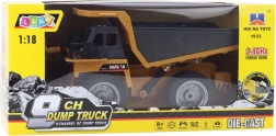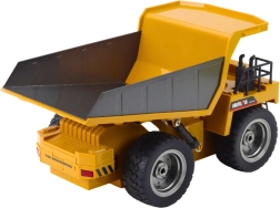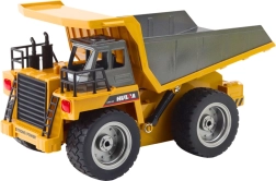 Realistische spiegelgestuurde HUINA kiepwagen op schaal 1:18 met vloeiende besturing op 2,4 GHz, 9‑kanaals bediening, heffen en laten zakken van de laadbak en een duurzame constructie van metaal en hoogwaardig plastic. Rubberen banden met profiel en achterste LED‑lichten zorgen voor een geweldige ervaring binnen en buiten.