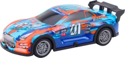 Stijlvolle RC-raceauto op 27 MHz voor snelle en leuke ritten binnen en buiten. Duurzame combinatie van kunststof en rubber, realistisch design en een verlichte carrosserie voor een spectaculair effect, ook na zonsondergang. Eenvoudige bediening vooruit/achteruit en sturen links/rechts ondersteunt de reflexen en coördinatie van kinderen.
