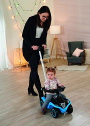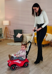 Breid de mogelijkheden van de populaire Bobby Car uit met een slimme duwstang met rugleuning en veiligheidsbeugel. De telescopische constructie met een verstelbare lengte van 88–108 cm maakt het begeleiden tijdens wandelingen makkelijker en ondersteunt de vermoeide beentjes van kleine bestuurders. De duurzame uitvoering van hoogwaardige, kindveilige materialen is gemakkelijk schoon te maken en bestand tegen dagelijks gebruik.