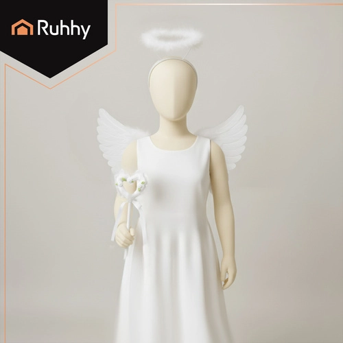 De RUHHY-set in zuiver wit geeft elke outfit een etherische touch. De elastische bandjes houden de vleugels stevig en comfortabel op de rug, terwijl de delicate “veren”-afwerking elegant en fotogeniek oogt. De complete set tilt je styling meteen naar een hoger niveau – gewoon aantrekken en je straalt.