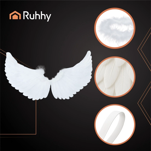 Lichte en opvallende witte engelenvleugels met een aureool op een haarband en een hartvormige toverstaf zijn de perfecte aanvulling voor engelen-, feeën- of fantasykostuums. Dankzij de gevederde, realistische uitstraling en de elastische schouderbandjes zitten ze comfortabel en zien ze er geweldig uit op foto’s. Ideaal voor Halloween, carnaval, schooloptredens en fotoshoots, en ze dienen ook als stijlvolle interieurdecoratie.