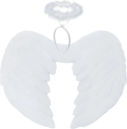 Lichte, witte engelenvleugels met een donzige halo op een haarband zijn de perfecte accessoire voor carnaval, Halloween, kerstspel, fotoshoots en theatervoorstellingen. Dankzij de elastische bandjes zitten ze comfortabel en passen ze uitstekend. Realistisch “natuurlijk” verenwerk, sneeuwwitte kleur en een volledige set vleugels met halo geven elk kostuum subtiliteit en een magische sfeer. Ook geschikt als decoratie voor de kamer of scenografie.