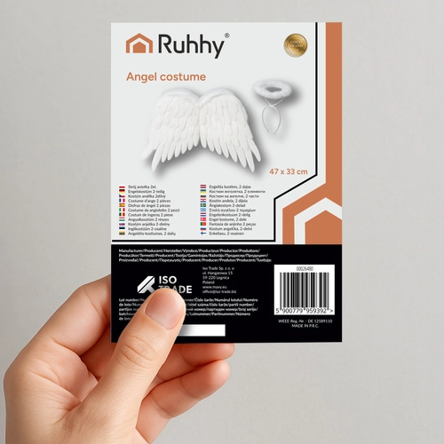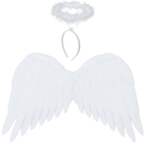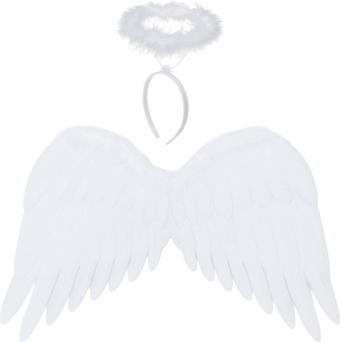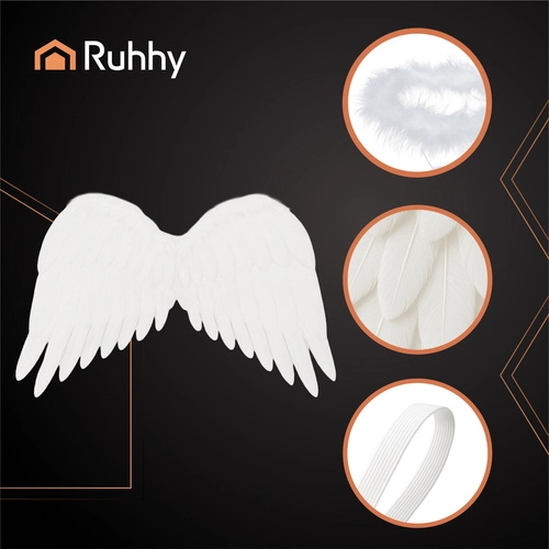 Deze 2-delige RUHHY-set bevat witte engelenvleugels en een flexibele haarband met aureool. De vleugels hebben een lichte constructie met een gevederd oppervlak dat echte veren imiteert, waardoor ze een zachte en elegante uitstraling hebben. Dankzij de elastische schouderbanden trek je ze gemakkelijk aan en blijven ze goed zitten, ook bij langer dragen.