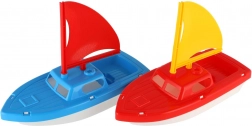 - rood met geel zeil; blauw met rood zeil