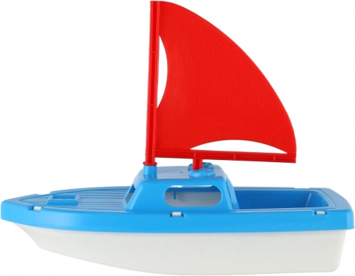 Verkrijgbaar in twee aantrekkelijke combinaties – rood met een geel zeil of blauw met een rood zeil. Fijne details van romp en cabine stimuleren de verbeelding en ondersteunen de ontwikkeling van fijne motoriek en creatief spel.