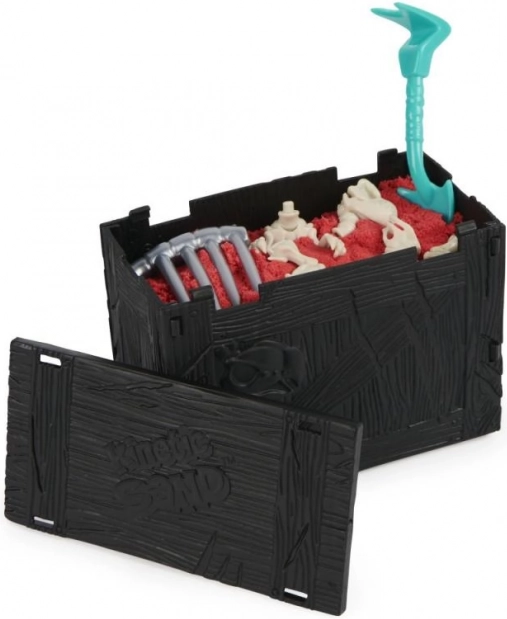 kinetisch zand, box/“kist”, opgraafgereedschap, botten/skelet van een dinosaurus om te monteren