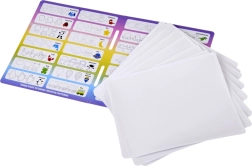 Inclusief aangesloten stylus/kwast, een compacte basis voor eenvoudig opbergen en een set witte kaarten om herhaaldelijk te oefenen met tekenen aan de hand van simpele voorbeelden.