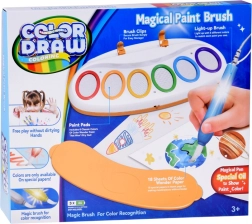 De magische Color & Draw LED-kwast vervangt klassieke verf en water door veilig licht. Het kind kiest een kleur op de basis met gekleurde pads en brengt die over op de meegeleverde speciale papieren – de kleuren lichten na een moment op en de tekening komt tot leven. Creatief, schoon en intuïtief schilderen stimuleert de verbeelding en de fijne motoriek.