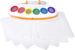 - Elektronische kwast/stylus met LED, basis met gekleurde pads, speciale papieren (ca. 18 stuks), kwasthouder