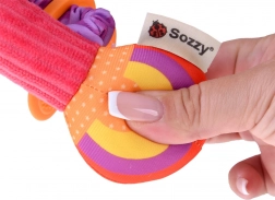 Dit multisensorische speeltje biedt zowel geborgenheid als plezier: binnenin zit een rammelaar met een aangename klank, de oortjes van knisperstof nodigen uit om te ontdekken en bij het indrukken van het buikje klinkt een vrolijk piepje. Contrasterende kleuren en verschillende texturen ondersteunen op natuurlijke wijze zicht, gehoor en tast.