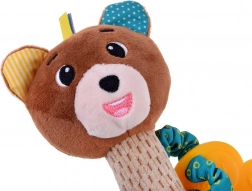 • Interactieve elementen: rammelaar binnenin, knisperende oortjes en piepertje in het lijfje