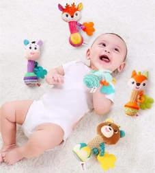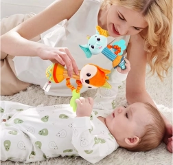 Het geïntegreerde rammelaartje met een aangenaam, melodieus geluid en knisperende oortjes stimuleert de aandacht en zintuiglijke ontwikkeling van de baby zonder ongewenst lawaai.