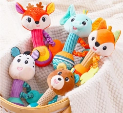 Pluche rammelaar en bijtring dierenvorm voor baby’s