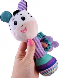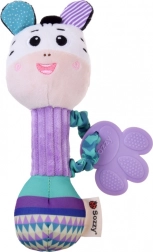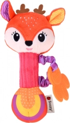 Lieve rammelaar met diertje die superzachte pluche combineert met een veilige siliconen bijtring voor gevoelige tandvlees. Biedt zachte geluiden, knisperende oortjes en een licht, gemakkelijk vast te houden ontwerp dat de zintuigen en fijne motoriek stimuleert vanaf de eerste maanden.