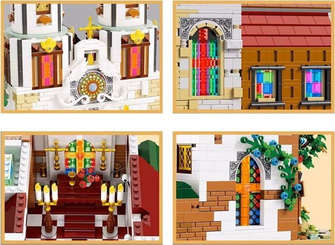 Deze gevorderde bouwset vangt getrouw de silhouet en versiering van een van de oudste kerken van Krakau. Op het model springen de twee hoge torens met gouden kruisen in het oog, een gedetailleerd portaal, glas-in-loodramen van gekleurde transparante steentjes en rijke buitenelementen met groen. Het interieur is versierd met een altaar met gouden details, kandelaars, bloemen en banken.