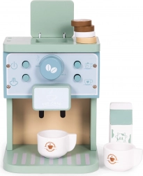 Stijlvolle ECOTOYS kinder-koffiemachine in pastelkleuren voor realistisch caféspel. Veilige houten constructie zonder scherpe randen, 8 delen in de set en een openbare capsulehouder zorgen voor eindeloos speelplezier. Draaiknoppen met klik-effect en bewegende knoppen ondersteunen de fijne motoriek, creativiteit en sociaal spel voor kinderen vanaf 3 jaar.