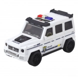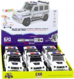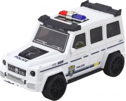 Een leuke witte politieterreinwagen die kinderen actie en fantasie biedt. Dankzij de wrijvingsaandrijving rijdt hij vooruit met een simpele duw, terwijl licht- en geluidseffecten voor een realistische sfeer zorgen. Na het openen verandert het voertuig in een baan met katapult, waaruit een klein autootje kan worden gelanceerd – dubbele dosis plezier in één.