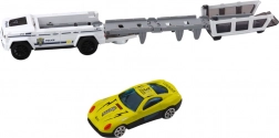 De grootste verrassing zit van binnen: na openen verandert de auto in een baan met katapult die een klein autootje lanceert (geel of zwart, afhankelijk van de set). Dit slimme 2-in-1 concept stimuleert verbeelding, coördinatie en fijne motoriek.