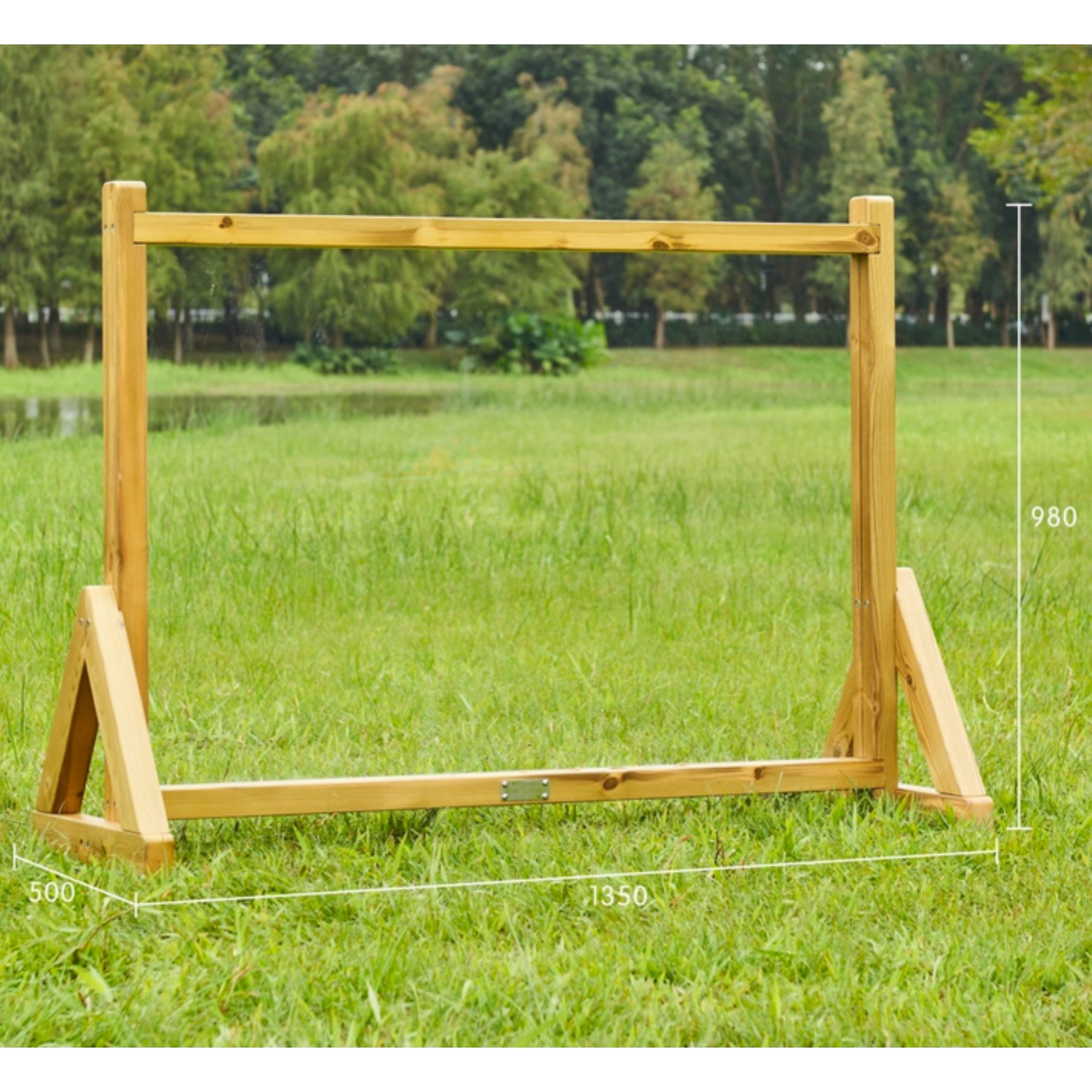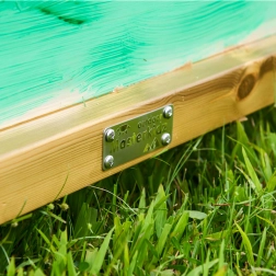 Het massieve houten frame met metalen bevestigingsmateriaal zorgt voor hoge stabiliteit en een lange levensduur, ook bij gebruik buiten.