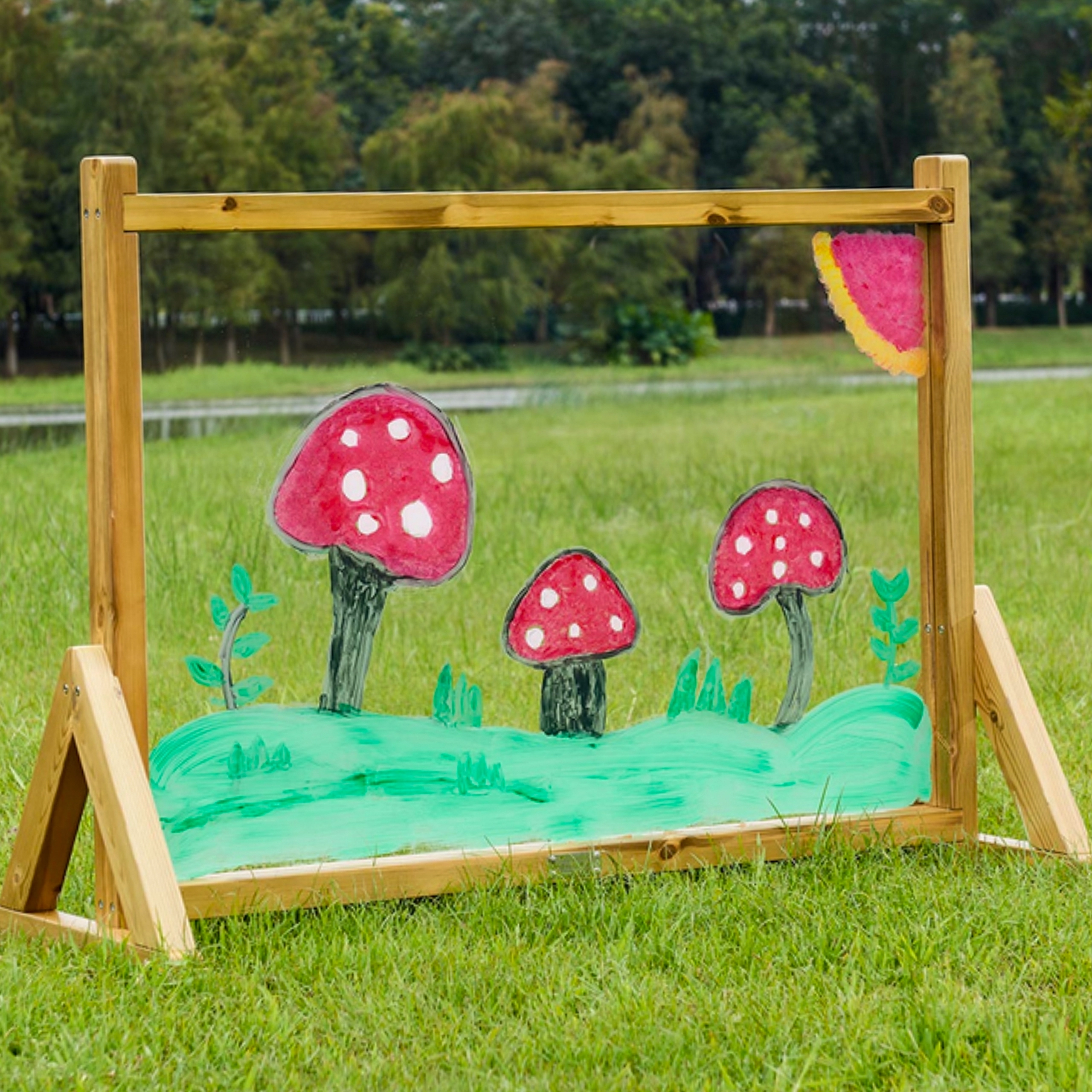 Het grootformaat transparante oppervlak laat kinderen schilderen wat ze direct zien – landschap, objecten of vriendjes aan de andere kant. Het bord reikt tot aan de vloer, zodat het comfortabel is voor kinderen van verschillende leeftijden en lengtes. Na het schilderen veeg je het oppervlak eenvoudig schoon en het is klaar voor de volgende sessie.