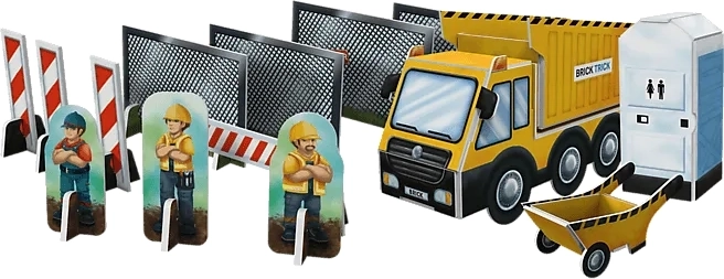 Bouw je eigen model van een bouwplaats met echte kleistenen en hout! De set Trefl Brick Trick Bouwplaats XL biedt 290 onderdelen, die je verlijmt met in water oplosbare lijm, aanvult met houten latjes en versiert met decoraties. Bouwen volgens de handleiding of je eigen fantasie ontwikkelt handvaardigheid, verbeeldingskracht en concentratie.