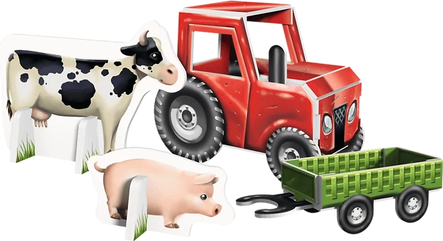Inclusief standaards met een tractor en dieren die het spel verbeelding en beweging geven. Ideaal voor themascènes en rollenspel.