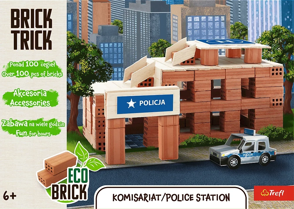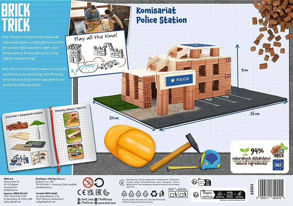 Bouw een gedetailleerd politiebureau van echte kleibaksteentjes en houten elementen. De set biedt een authentieke bouwervaring – steen voor steen, het snijden en lijmen van plankjes en de finale afwerking met meegeleverde decoraties en papieren figuurtjes. Het voltooide bouwwerk kun je eenvoudig aanpassen en uit elkaar halen dankzij de lijm die in water oplost.